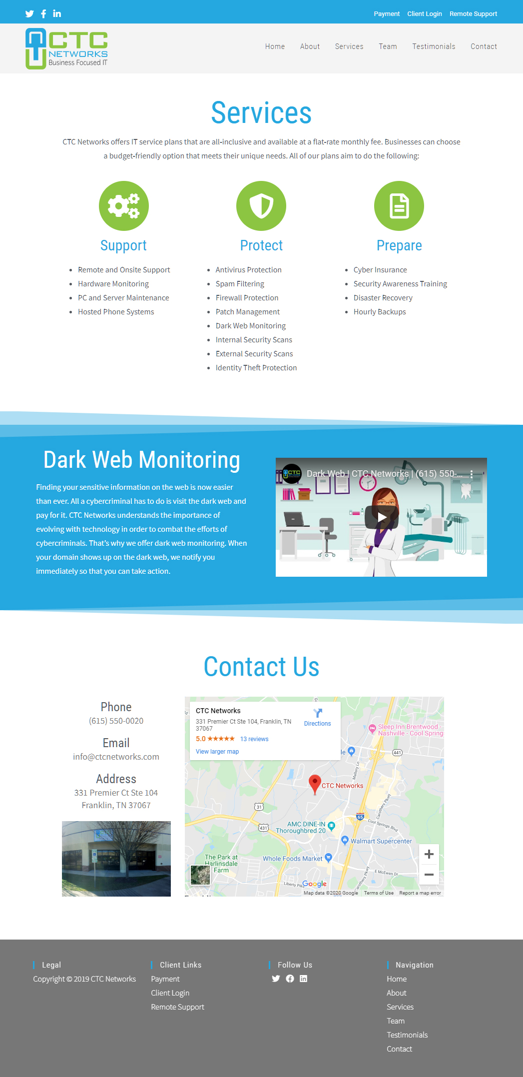CTC Networks is a managed IT service provider located in Franklin, TN. I worked as their marketing assistant for the last two years, designing and writing the content for email campaigns, creating service flyers and brochures, and redesigning the company’s website.